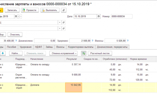 Опять же без прекращения этого планового начисления с временным переводом внутри месяца тоже некорректно отрабатывает, все равно 2 строки.