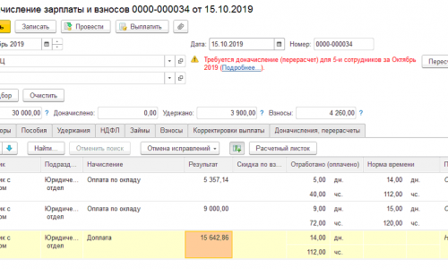 Добрый день! На предприятии начисляется премия. Фомула расчета такая 50*Окр((?((ДополнительнаяДоплата — РасчетнаяБаза)<0,0,(ДополнительнаяДоплата — РасчетнаяБаза)))/50,0) . Дополнительная доплата — некая сумма, которая задается для каждого сотрудника и не зависит от отработанного времени. Расчетная база — оклад, заработанный сотрудником в расчетном месяце. Таким образом, предприятие доплачивает разницу между дополнительной доплатой и окладом. Пусть в месяце у сотрудника дополнительная доплата = 30 000, оклад 15 000. Допустим в 20 числах месяца у сотрудника меняется график работы. В документе начисления зарплаты в данном случае неправильно рассчитывается данный вид начисления. Получаем 2 строки премии, первая строка до изменения оклада: 30 000 — 10 000 (оклад)= 20 000; вторая строка 30 000 — 5 000 = 25 000. В сумме получается 45 000 премии, а должно быть в итоге 30 000 — 15 000 = 15 000. Как исправить формулу расчета?