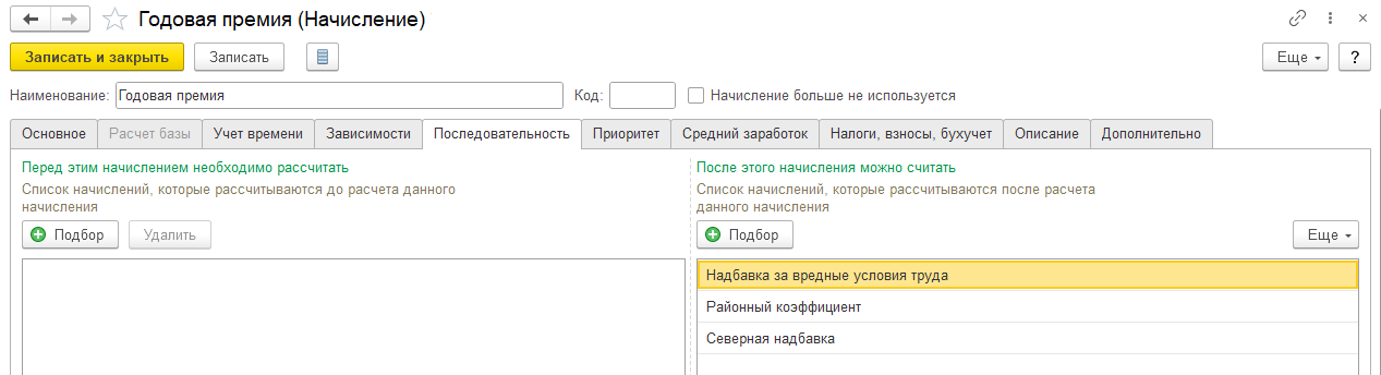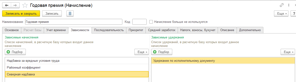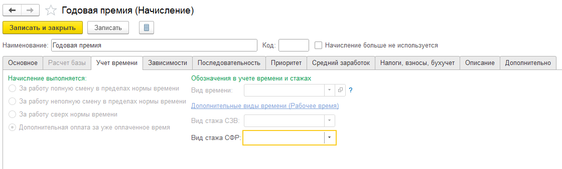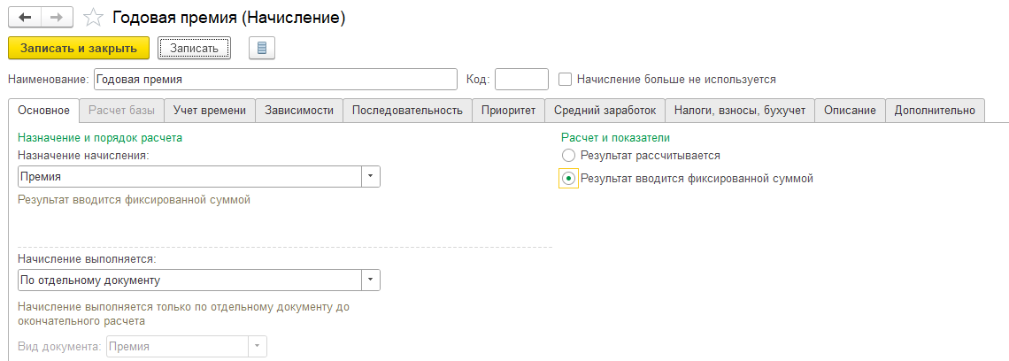 1. Годовая премия, учитываемая частично — если начисляется без учета отработанного времени. В моем примере премия начисления фиксированной суммой.