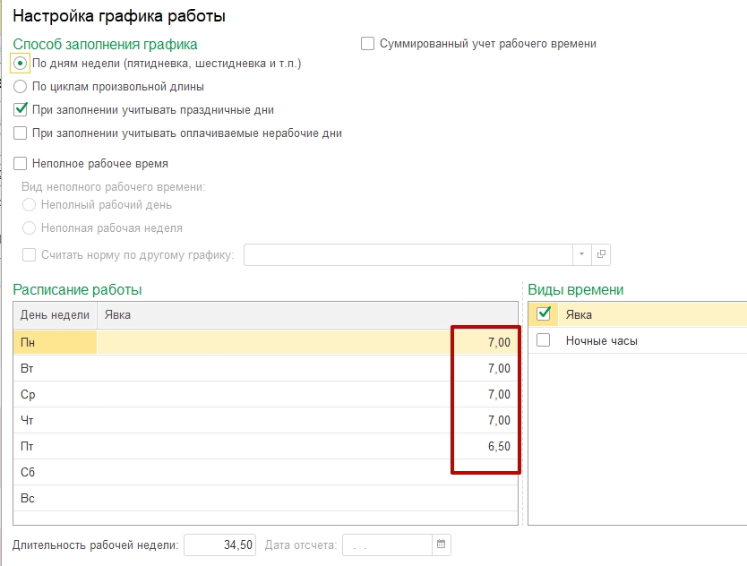 Сотрудник решил работать по графику 7 часов 4 дня в неделю, в пятницу 6,5 часов. Оклад по штатному расписанию для 40 часовой рабочей недели 50 000 рублей. Подскажите, пожалуйста, каким образом корректно оформить данную операцию.