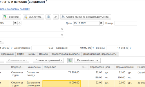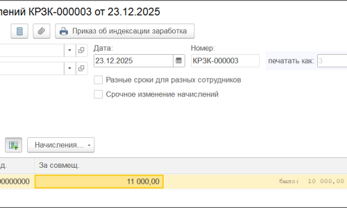 Здравствуйте. Конфигурация ЗУП Корп (3.1.36.39), типовая. Сотруднику 01.01.25 г. оформлено совмещение должностей, по виду «совмещение должностей», размер доплаты % от ФОТ должности. Затем, 01.12.25 внесено изменение в штатное расписание, увеличен оклад по совмещаемой должности, создан документ «Изменение плановых начислений», в котором ожидалось, что сумма начисления за совмещение по должности также увеличится, но этого не произошло — она осталась прежней, как была установлена изначально в документе совмещения от 01.01.25. Во вложении — скриншоты.