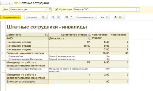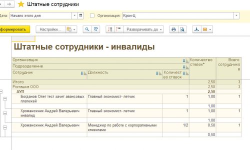 Захотелось увидеть в этом же отчете ск. всего ставок по конкретной должности согласно штатного расписания и затем выше изложенную группировку по сотрудникам. Т.е. всего по ШР=… из них инвалиды=…