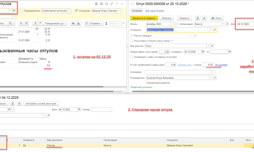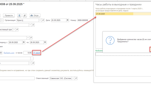 Добрый день! Хотим предоставить сотруднику отгул на весь рабочий день (1 день) за период до 01.03.2025г. и списать 8 часов, но при проведении документа автоматически подтягивается день 21.06.2025г. (6 часов) и выдает ошибку — нет достаточного количества заработанных отгулов. Как сделать, чтобы этот день не подтягивался? Хочу добавить, что у нас все переработки — сверхурочные и выходные — регистрируются в часах.