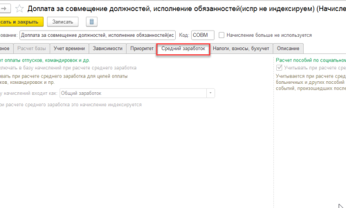В настройках начислений на вкладке Средний заработок есть возможность установить или сбросить флажок — При расчете среднего заработка это начисление индексируется, который отвечает за то, как будет учитываться данное начисление в расчете среднего заработка при индексации -Индексируемый или неиндексируемый.