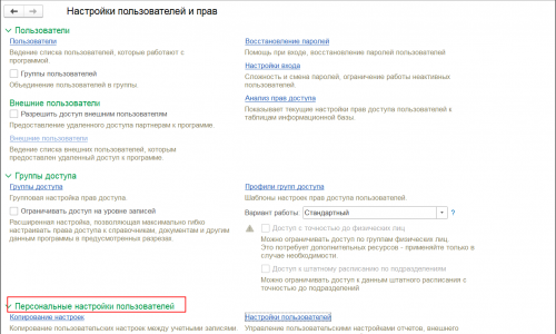 раздел Администрирование — Настройки пользователей и прав — Персональные настройки пользователей