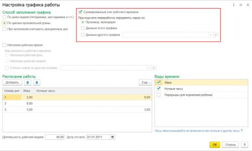 — если флажок «Считать норму по другому графику», то норма часов определяется исходя из данных графика, который указан рядом с этим флажком