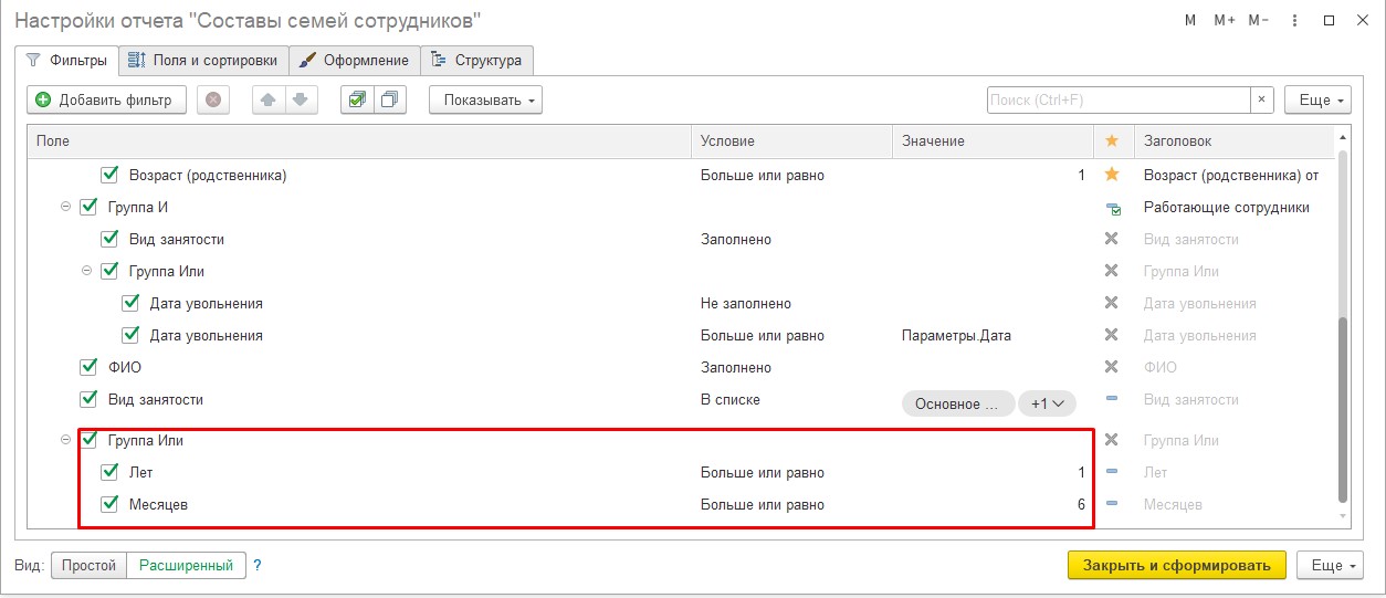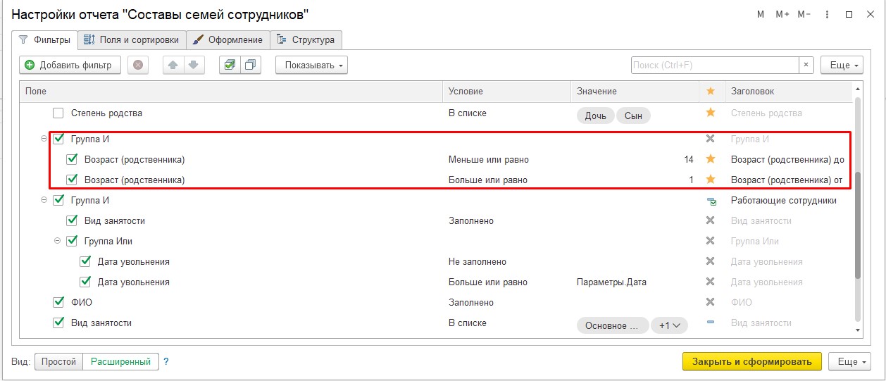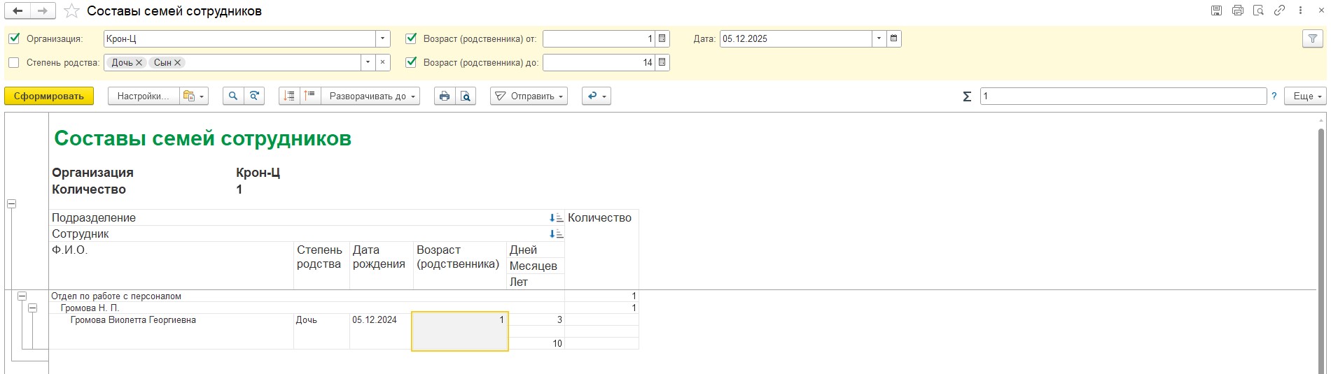 Можно ли настроить отчет «Состав семей сотрудников», чтобы можно было выбрать возраст детей и подопечных от 1 года до 14 лет?