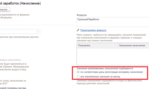 Здравствуйте! В последних релизах на данный расчет влияет настройка показателей в начислении «Сдельный заработок» (они показаны на скриншоте). Если указано значение «по соответствию даты регистрации периоду начисления», то сторно-запись появится только тогда, когда дни указанные в документе «Сдельные работы» совпадут с периодом больничного, при этом сторно должно рассчитаться верно. При втором варианте «Все накапливаемые показатели за месяц» возможно появление ошибки, она зарегистрирована, но не исправлена.