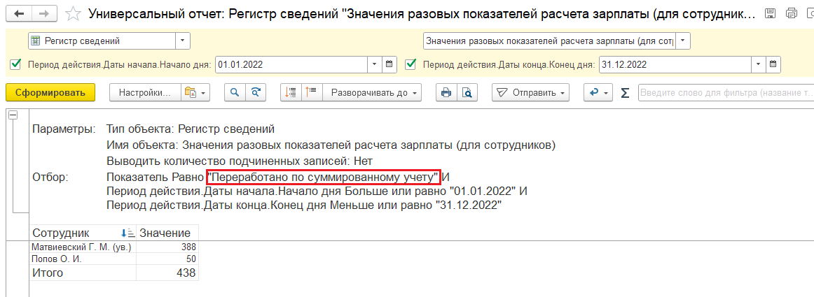 Но в данном случае отчет будет формироваться только при условии, что документ Регистрация переработок проведен.