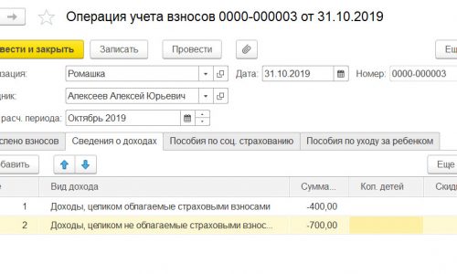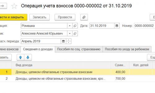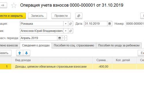 (1400 + 400) — это суммы начисленные в октябре, я с Вами абсолютно согласно. Однако в данном случае начисленные это значит отражегнные в БУ. Однако в учете по взносам эти суммы отражены апрелем документами Операция учета взносов. Изначально программа отражала их в учете взносов также октябрем, но в связи с необходимостью сдавать корректировку РСВ за 2 квартал и показать эти суммы именно апрелем, мы их «перенесли» из октября в апрель.