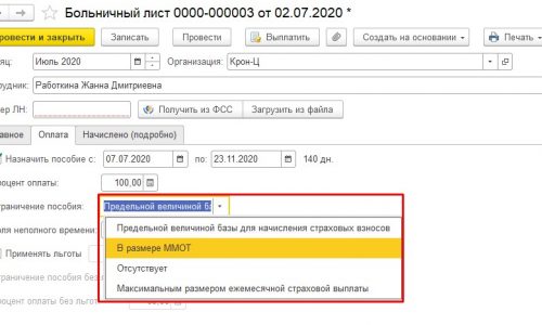 1. Мне кажется. что раньше уже сталкивалась с такой проблемой, и именно когда больничный просто скопирован. Не уверена, что в этом дело, но возможно так. Точно в том больничном. который копировали, установлено не значение ограничения » В размере МРОТ». Лучше больничные создавать не копированием.