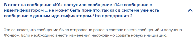 В ответе на запрос СФР для расчета пособия, пишет не принят, см ошибка логического контроля. Сообщение с индентификатором (длинный номер) не может быть принчто т.к в системе уже есть сообщение с данным индентификатором. Подскажите что это такое и как исправить? В базе дублей нет.