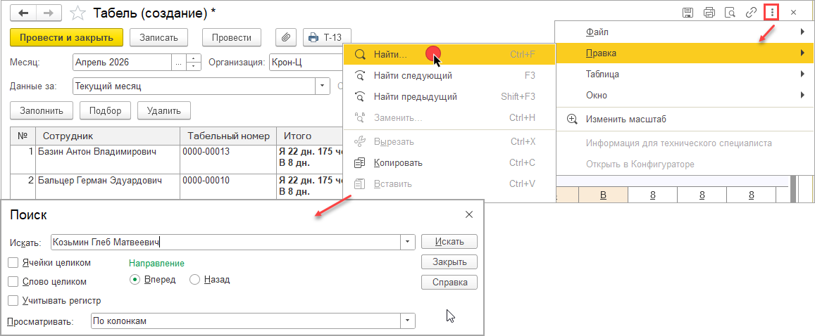 Благодарю за ответ! Территории установить удалось. Теперь вопрос по табелю,он видоизменился,можно ли в нем как то установить кнопку «поиск сотрудника»?