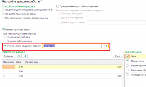 Добрый день! Скорее всего в настройках графика сотрудника заполнено значение в поле «Считать норму по другому графику» графиком — пятидневкой, отсюда появляется 165 часов в формуле и значение меньше нуля. Исправить можно либо изменив настройки графика, но тут нужно проверять расчет оклада или менять показатель в формуле, например на НормаЧасов *ДоляНеполногоРабочегоВремени.