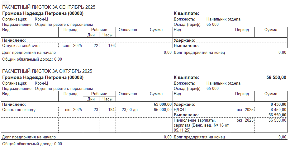 5. Дело в том, что я выполнила начисление з/платы за октябрь по сотруднику, если начисления з/п за октябрь нет, то у меня тоже отчет заполняется, как у Вас.