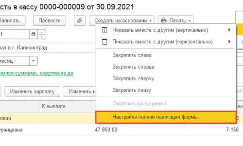 Главное меню — Вид – Настройка панели навигации формы. Откроется окно Настройка панели навигации. У нас ЗУП редакция 3.1 (3.1.19.80)