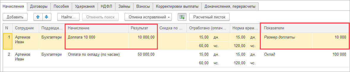 В результате у нас расчет будет таким как нам нужно и размер показателя, который определяет размер доплаты можно вводить 10000.