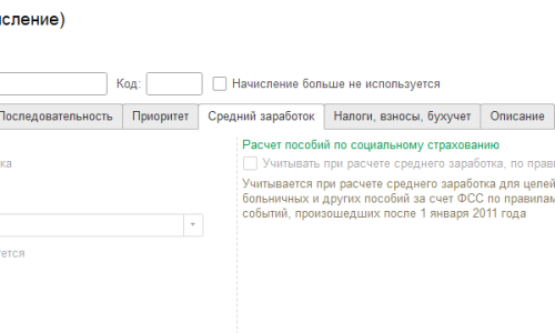 За эту настройку отвечают параметры на вкладке Средний заработок. При выборе назначения начисления Компенсационные выплаты — на вкладке Средний заработок все флажки сброшены. В средний такие доходы попадать не будут.