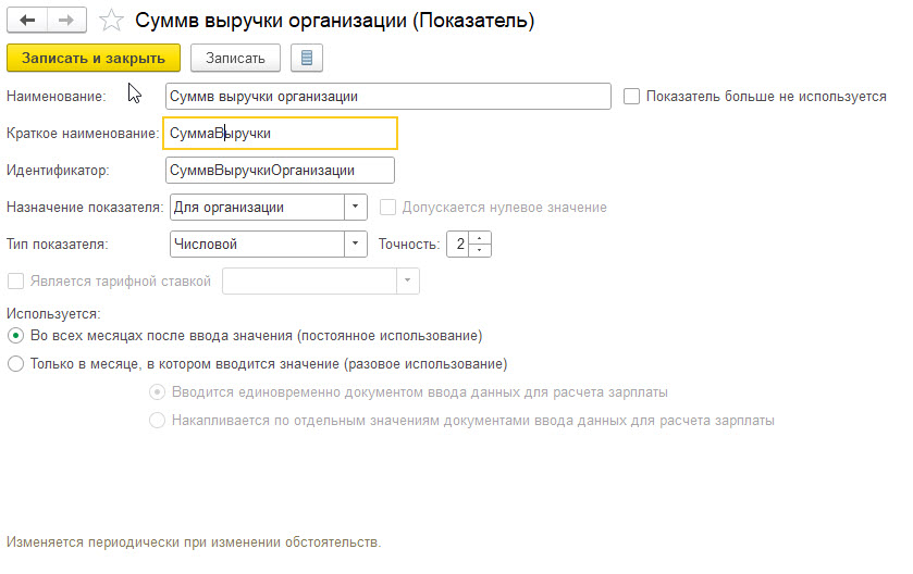 3) Создаем новые шаблон для ввода показателя Выручка за месяц (Настройки — Шаблоны ввода исходных данных). Показатель у нас теперь Постоянный для организации.