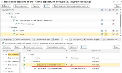 Настраиваю отчет "Анализ зарплаты по сотрудникам (помесячно)".
