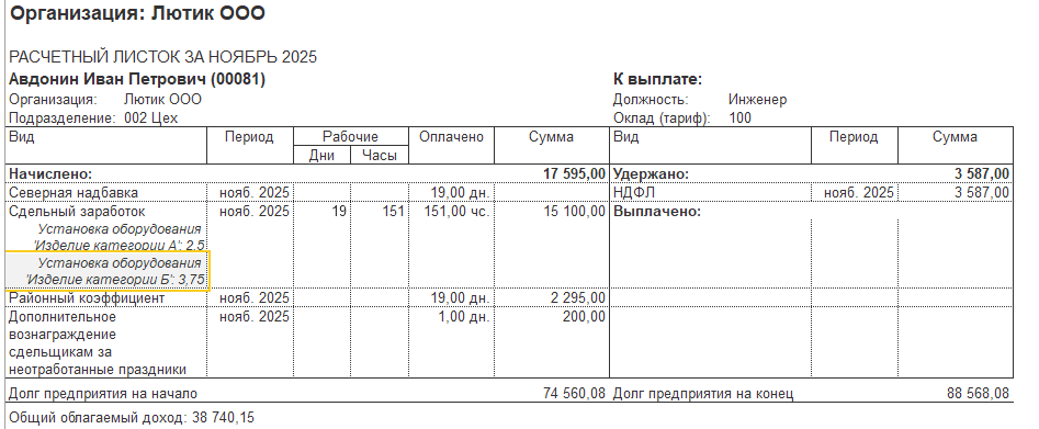 Добрый день! В расчетном листе нужна расшифровка по видам сдельных работ за месяц. При установке флага в поле расшифровать- сумма как была общая так и остается. Как добиться расшифровки?
