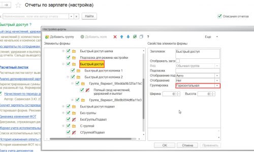 Добрый день. Помогите настроить расположение списка отчётов на панели разделов Зарплата — Отчёты по зарплате. Для ускорения работы с зарплатными отчётами добавила их в быстрый доступ. Отчёты отображаются списком в одну колонку. Хотелось бы расположить их в две колонки, чтобы осталось место для видимости отчётов, которые не добавлены в быстрый доступ.