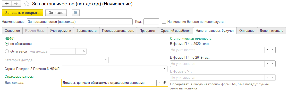 В настройках начисления устанавливаем обложение страховыми взносами: