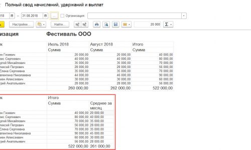 На основе отчета Полный свод начислений. удержаний. сформирован отчет нарастающим итогом за любой период времени с помесячным выводом начисленных сумм по каждому сотруднику в виде таблицы, где колонки — месяц начисления, строки — физические лица. В конце таблицы выводятся итоговые записи. Необходимо по каждому сотруднику выводить помимо этого среднемесячный заработок (итого начислено за выводимое количество месяцев / количество месяцев, за которые заработок его не равен нулю). Заранее благодарю за помощь.