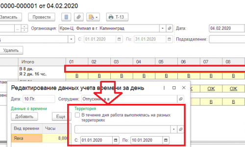 Спасибо большое за помощь! Да у нас был заполнен табель за первую половину, а за вторую мы еще не создали, поэтому территории ставятся По умолчанию.