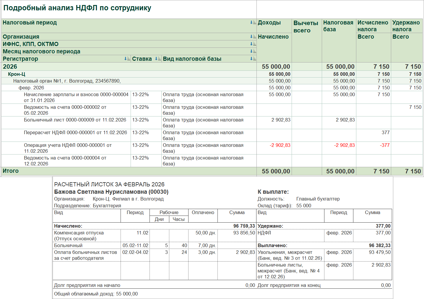 Добрый день. Помогите разобраться и выпутаться из ситуации, пожалуйста. Сотрудник умер, находясь на больничном. При расчете пособия программа удерживает НДФЛ. Читала ваши статьи и рекомендации по этому поводу. Изменять показатели сама не решилась, сделала ручные исправления. Убрала ндфл из расчета БЛ. Так как программа не давала выплатить по такому документу, доначислила его в корректировке НДФЛ, а потом сторнировала в операции по учету НДФЛ и пособие и налог. В анализе по сотруднику все было красиво. Но сейчас обнаружила, что и в Своде за февраль и в расчетном листке висит этот НДФЛ. И сумма выплаты наследнику занижена на него. По хорошему, убрать его из удержанных и выплатить по ведомости датой расчета. Работаю в 3.1.36.75. Помогите, пожалуйста, какой-нибудь идеей. Заранее благодарю!