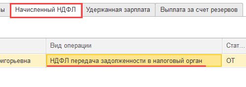 В качестве обхода можно вручную в Отражении зарплаты в бухучете внести сумму по операции НДФЛ передача задолженности в налоговый орган.
