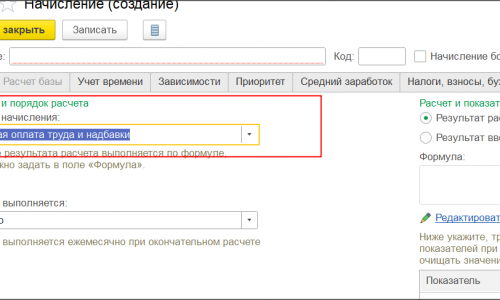 Скорее всего у вас на первой закладке выбран вид «Повременная оплата», необходимо выбрать «Прочие начисления и выплаты»