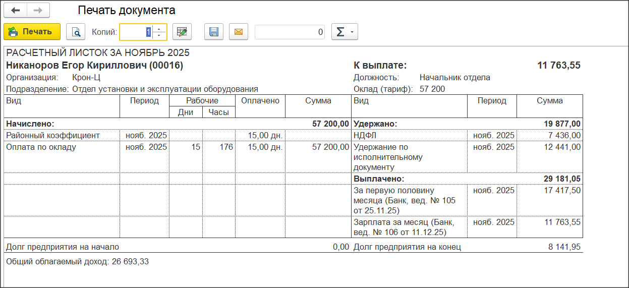 У вас сумма выплаты другая на предыдущем скрине с ноябрем с расчетом аванса, с вашими цифрами не должно так быть