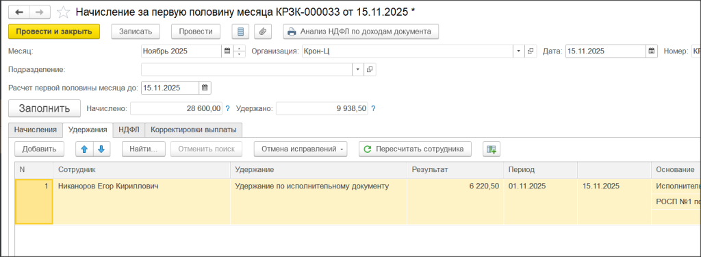 И добавьте пожалуйста скрин расчета за первую половину месяца
