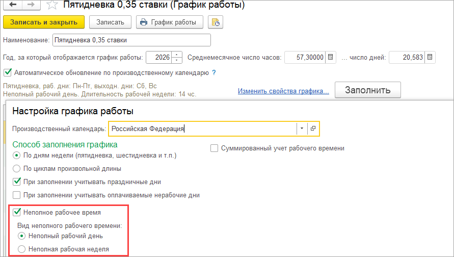 Данный код автоматически заполняется, если в графиках работы сотрудников установлены флажки неполного рабочего времени:
