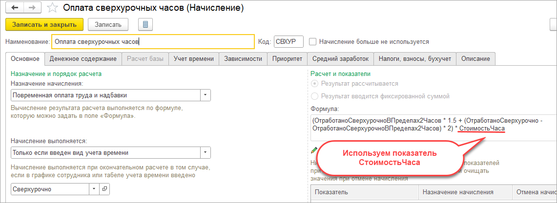 4. После этого расчет сверхурочных будет происходить по той формуле, что нам и нужно: