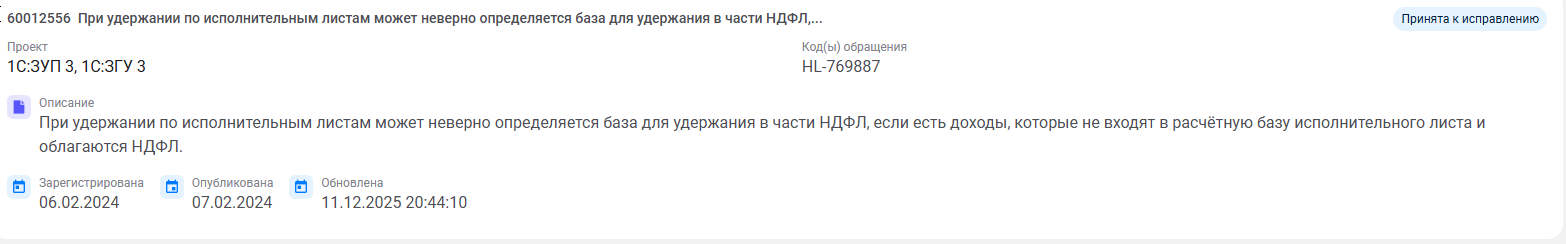 Пробовали создавать и в отдельном начислении зарплаты конкретного сотрудника, чистили кэш пользователя, пробовали под другим пользователем — НДФЛ при расчете исполнительного листа всё тот же.