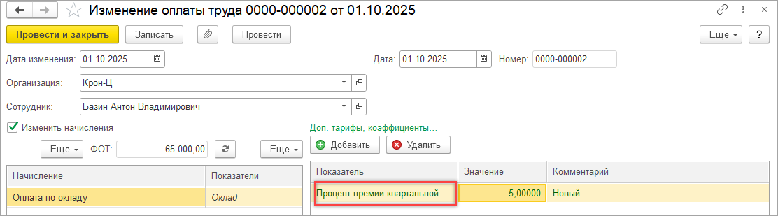 показатель Процент премии кв (для сотрудника) для сотрудника — числовой -во всех месяцах после ввода значения (постоянное использование)