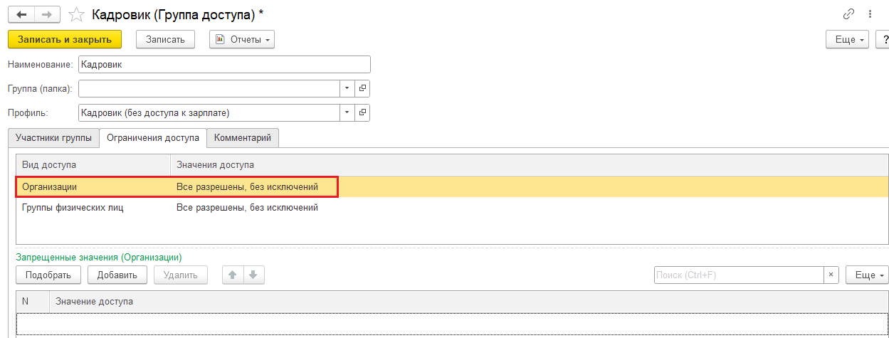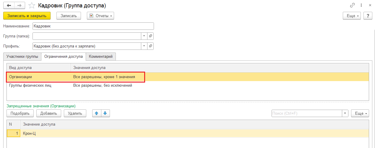 Если форма откроется, затем поставить ограничение Все разрешены, кроме 1 значения (или более как было настроено):