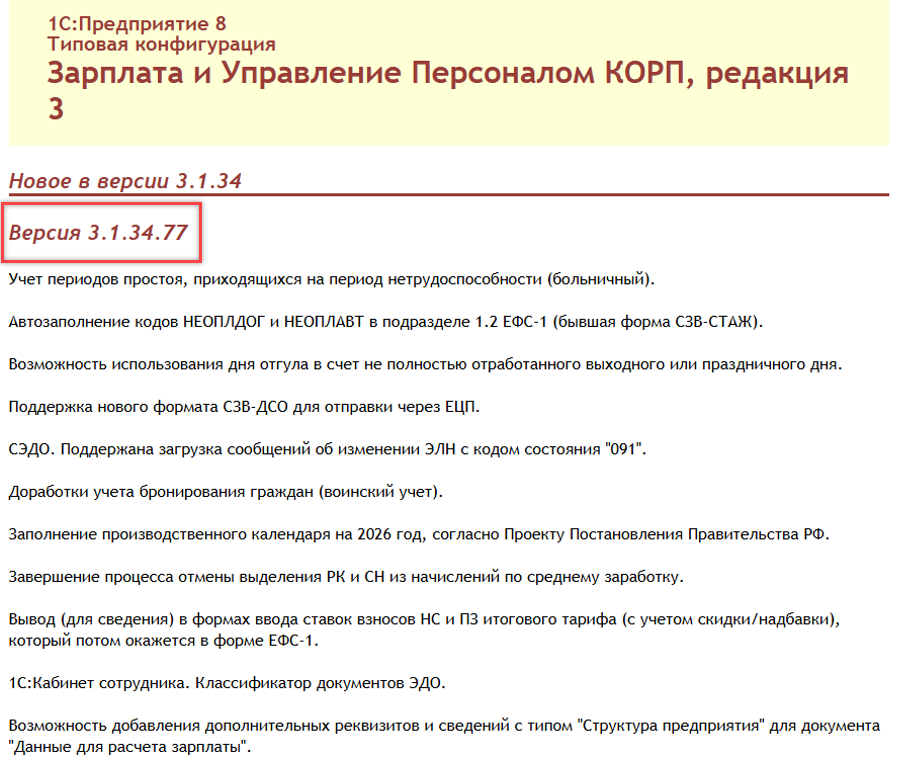 Правильно понимаю, что Вы работаете в ЗУП КОРП? Приложите пожалуйста скриншот, где описаны данные изменения к релизу.