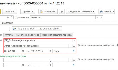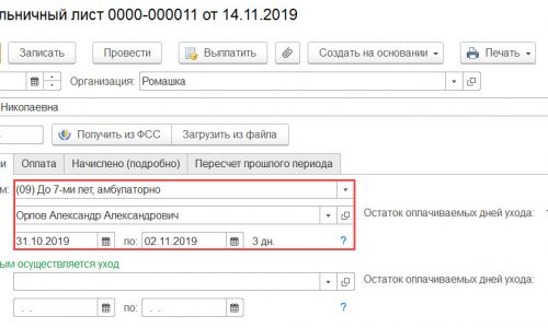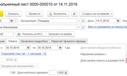 Что касается реализации в программе, то разработчиками изначально заложен алгоритм подсчета дней с начала нетрудоспособности, т.е. оплата за период 30.10.2019 по 02.11.2019 будет автоматически рассчитана исходя из 50%. Т.к. это более безопасный вариант. Но в связи с неоднозначностью данной ситуации разработчики оставили возможность изменить алгоритм поведения программы и оплатить период 30.10.2019-02.11.2019 также исходя из 80%.