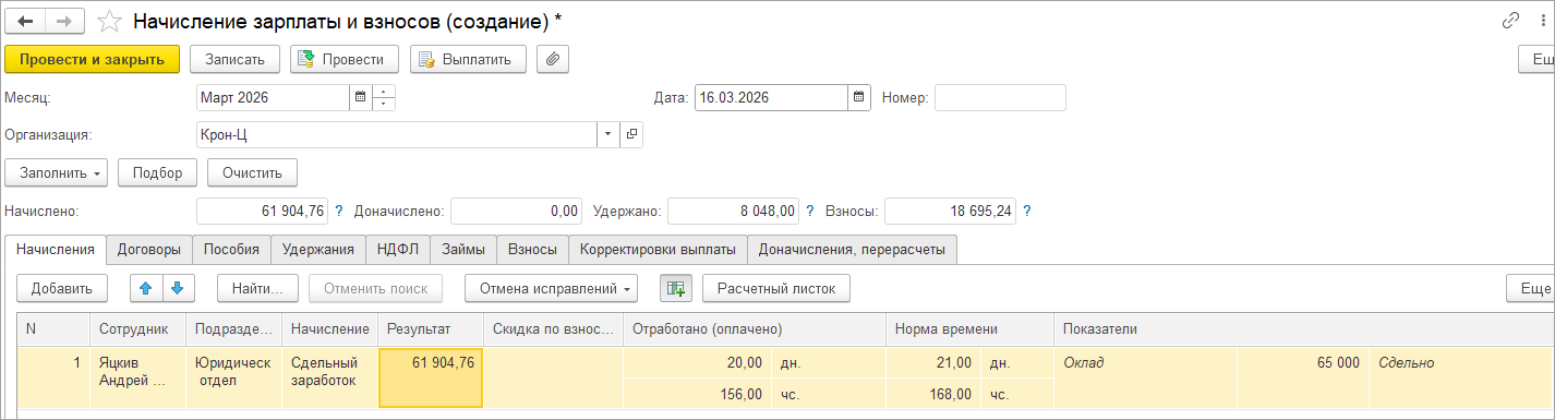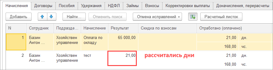 — начисляем зарплату за месяц, чтобы убедиться, что изменение показателя не повлияло на другие расчеты и зарплата рассчитывается правильно