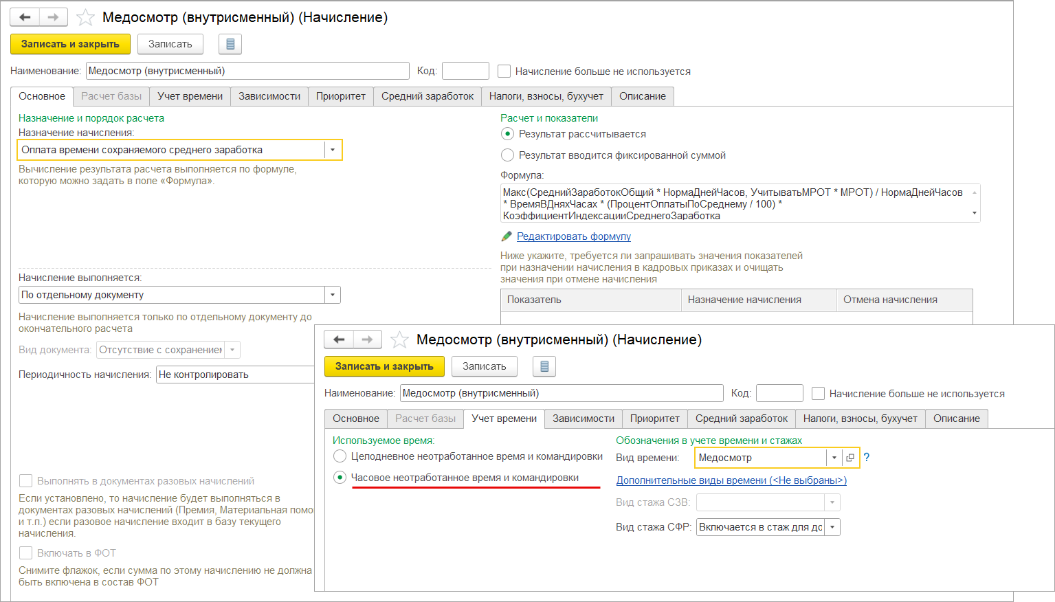 Чтобы была возможность оплатить только 3 часа — в настройках начисления на вкладке Учет времени включаем переключатель Часовое неотработанное время и командировки