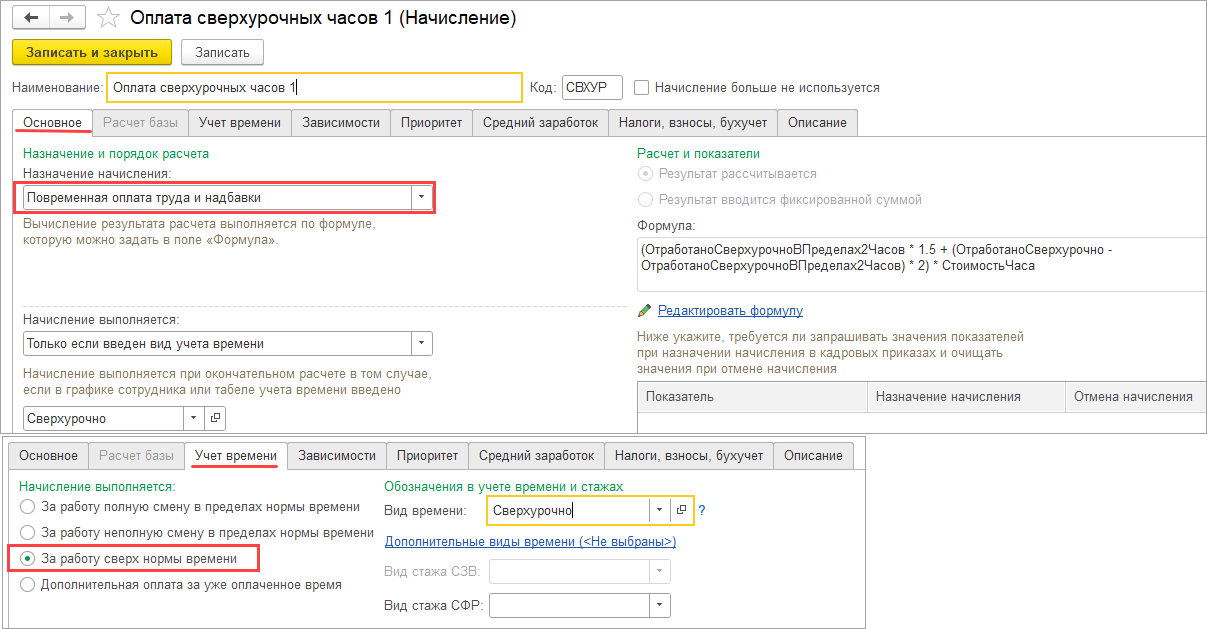 Приложите пожалуйста настройки нового начисления для оплаты сверхурочной работы.