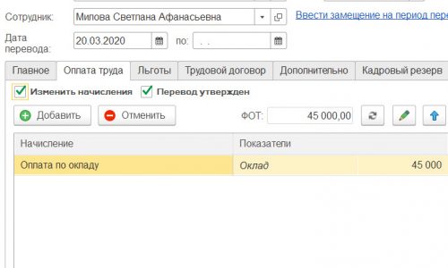 1. записи регистров сведений «Плановый ФОТ» и «Плановый ФОТ итоги» (Главное меню — Все функции — Регистры сведений) с отбором по сотруднику