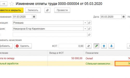 3. В документе, которым назначаем сдельную оплату (или можно создать новый док. Изменение оплаты труда с текущего месяца), указываем размер показателя