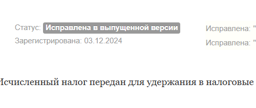 Здравствуйте! Зарплата и управление персоналом КОРП, редакция 3.1 (3.1.30.108). При проведении документов Натуральный доход; Приз, подарок с установленной галочкой «Исчисленный налог передан для удержания в налоговый орган» выходит ошибка. Подскажите в чем может быть причина?