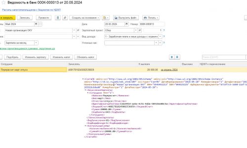 Смоделировала ситуацию на релизе 3.1.27.229. Создала Ведомость в банк. Указала зарплатный проект и заполнила ведомость