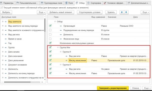 В первой «Группе И» выбирается только один вид расчета или список? У меня получается выбрать только один и отчет не формируется почему-то.
