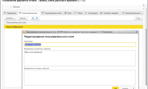 Но есть хитрость. Можно добавить пользовательское поле, которое будет полностью повторять поле «Виду учета времени» (скрин 1).